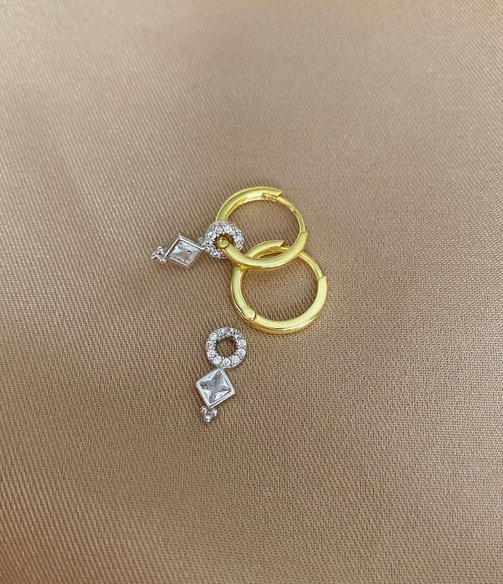 Tekli Mix Taşlı Halka Küpe-Dörtgen | 925 Gümüş